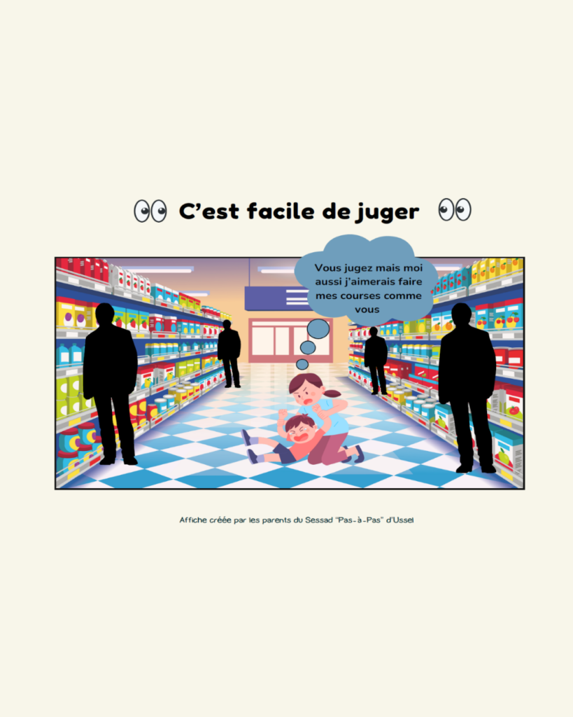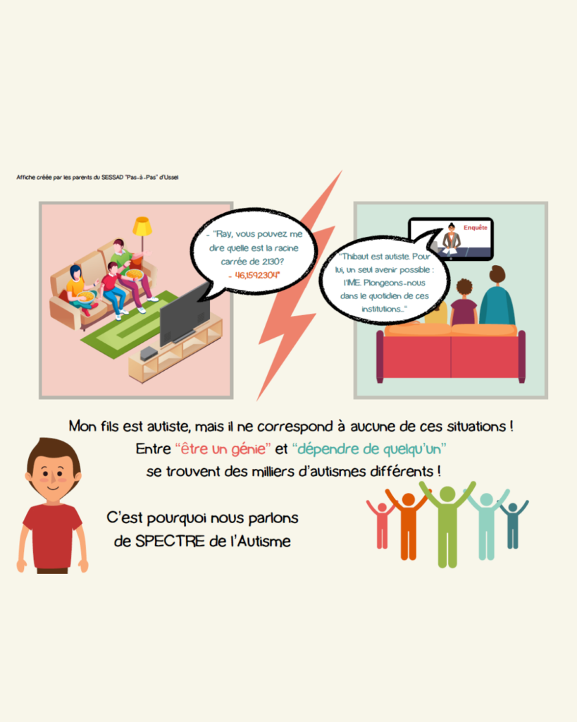 À l’occasion de la Journée mondiale de l’autisme le 2 avril 2024, les familles du SESSAD « Pas à Pas » d’Ussel ont pris part à un atelier d’écriture, s’associant ainsi au projet artistique mené par leurs enfants. Accompagnées par Lio et Estelle, les psychologues du service, elles ont exprimé leur vécu de parents d’enfants TSA à travers la création d’affiches poignantes.